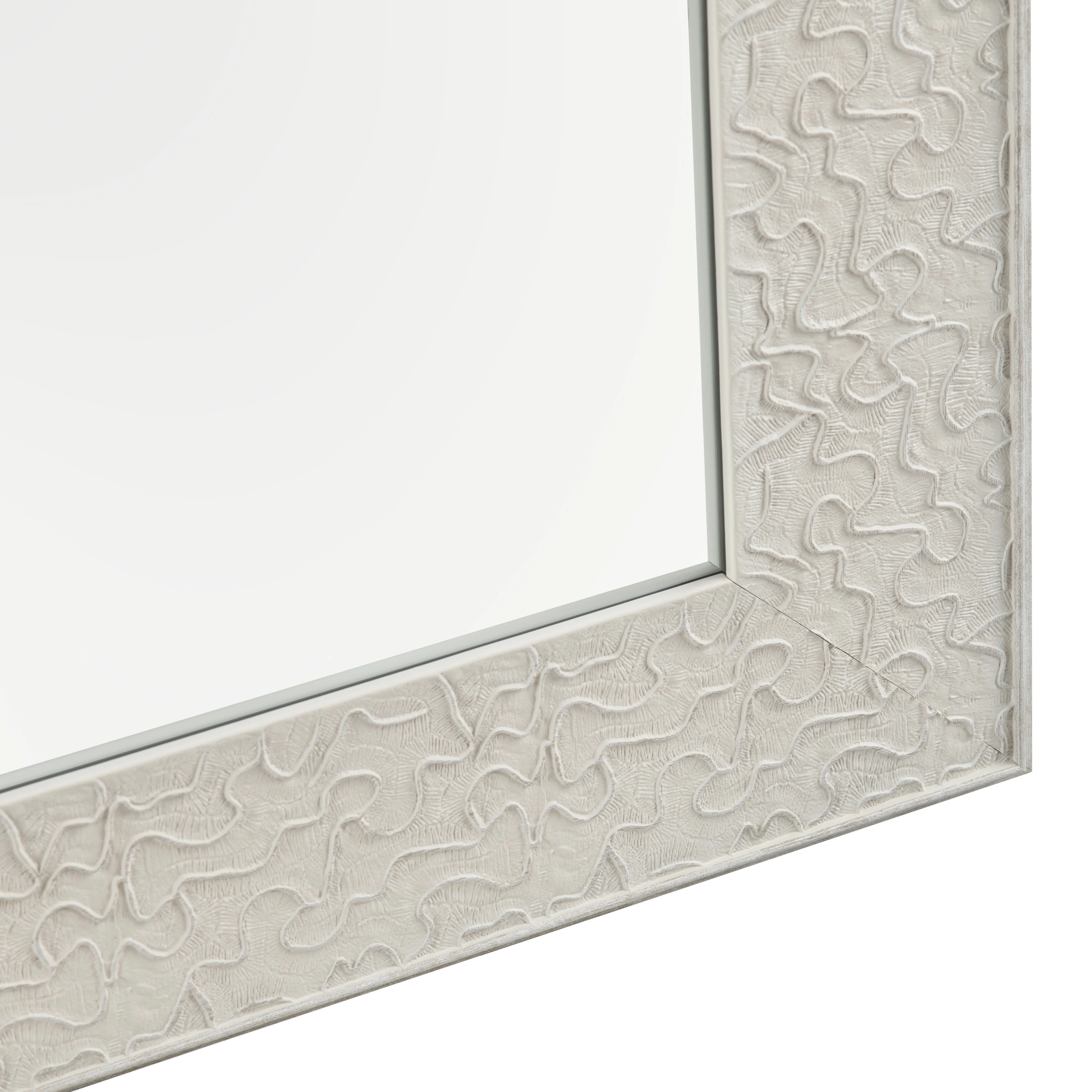 Introducing our Pierson 5 Oversized Wall Mirror, a versatile and artistic addition that effortlessly blends modern design with a touch of elegance. This oversized wall mirror features a pristine white frame adorned with a playful grey squiggle overlay design, creating a captivating visual effect that adds character and depth to your decor. Its unique design allows you to hang it in both orientations or lean it against the wall, offering flexibility in styling to suit your space.