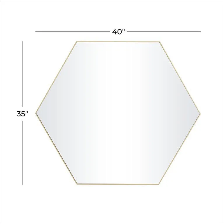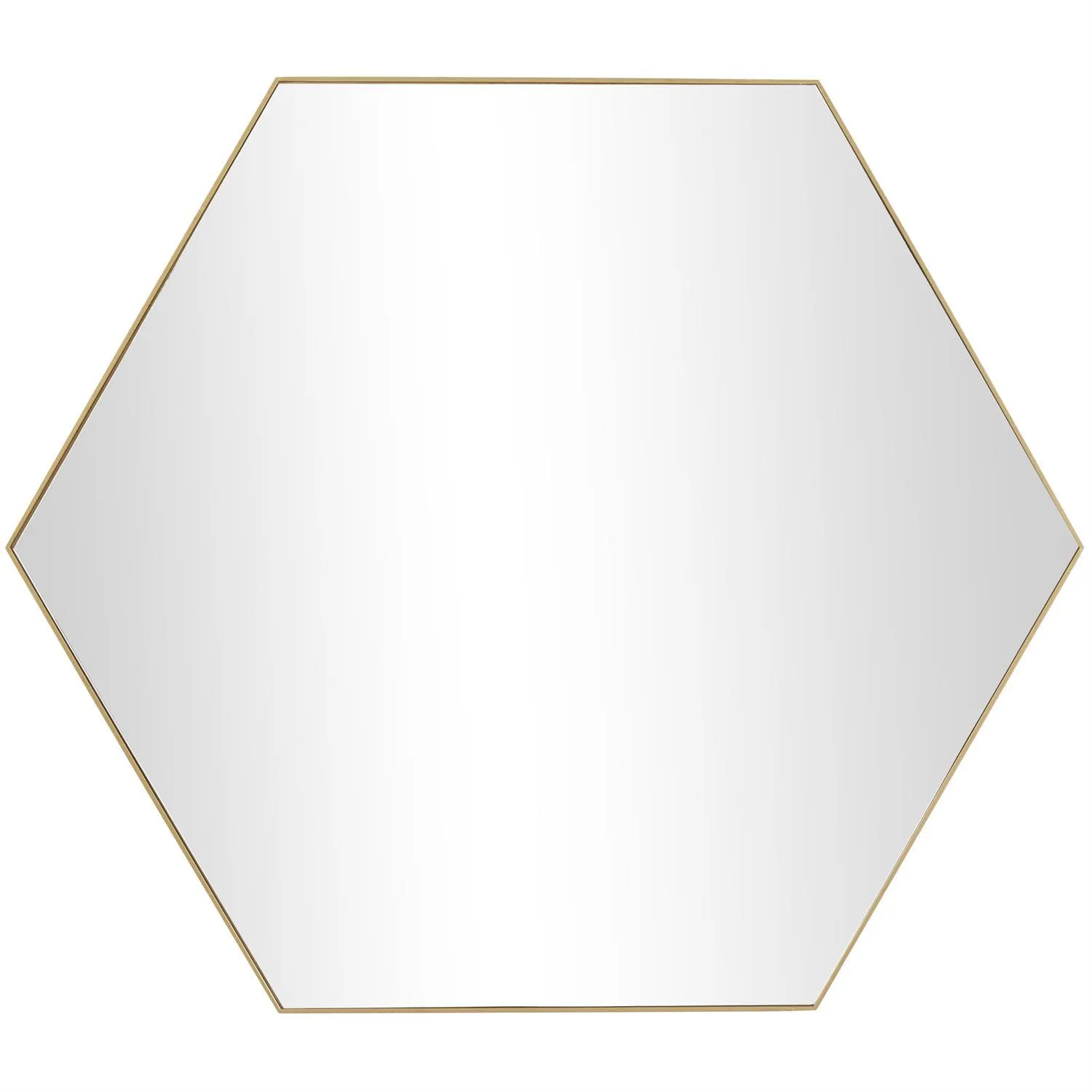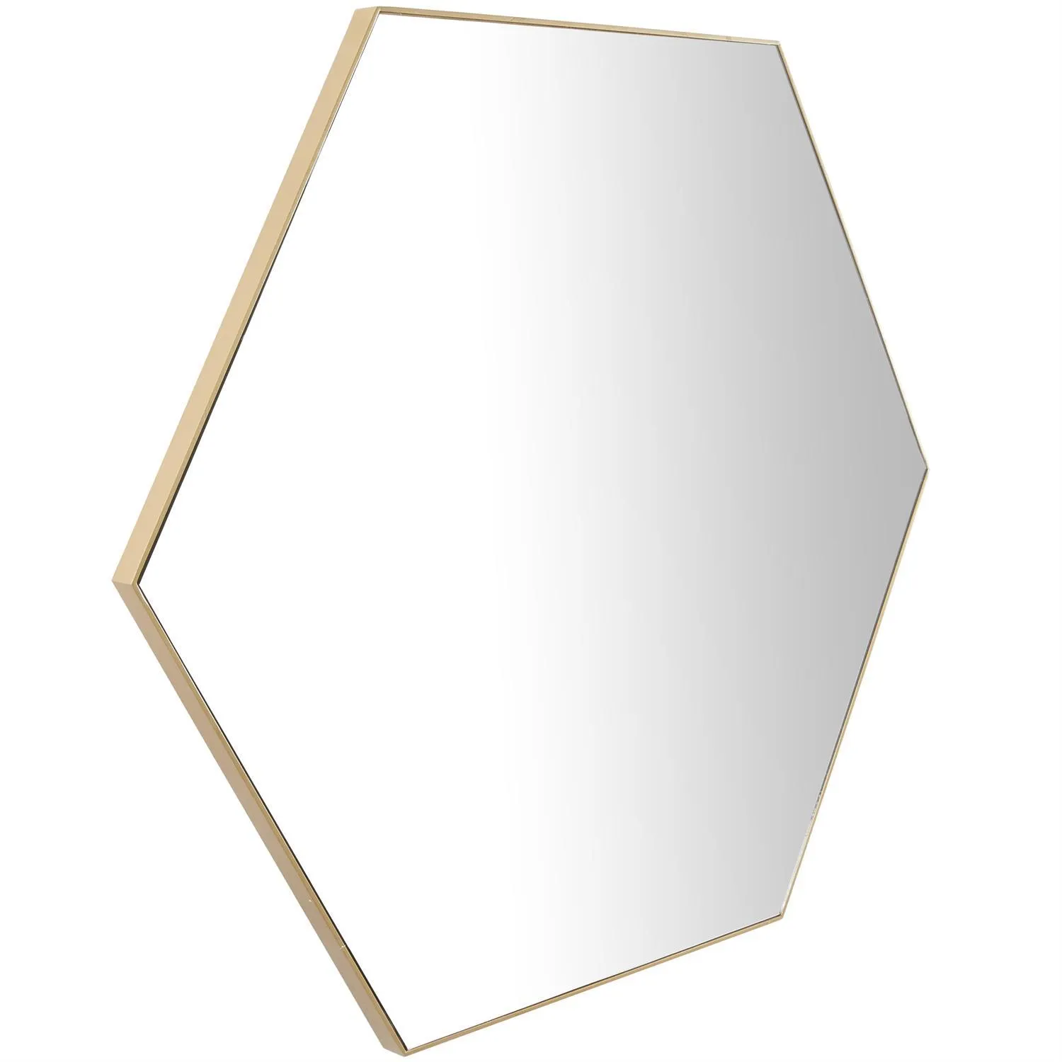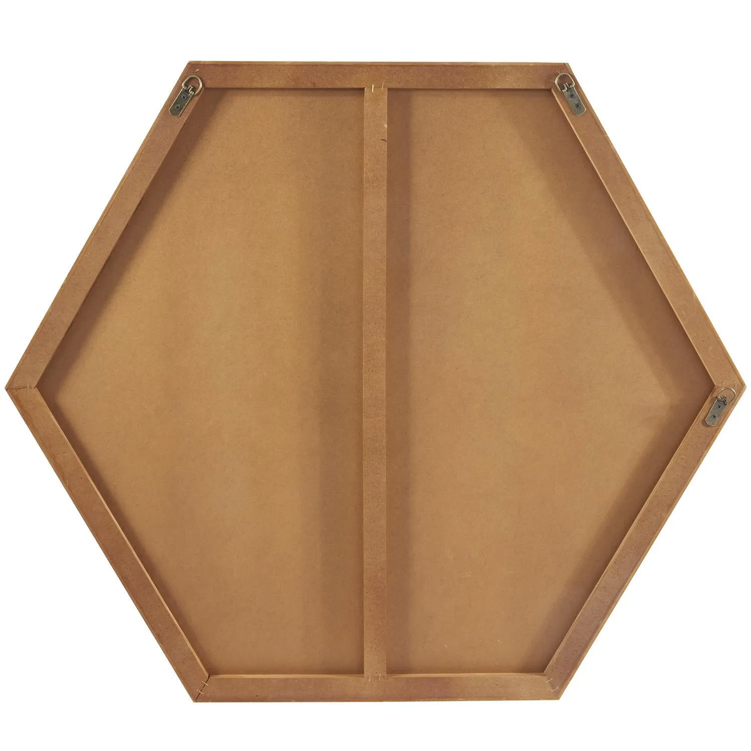 - This gold wall mirror is enclosed inside a simple yet elegant hexagon wooden frame