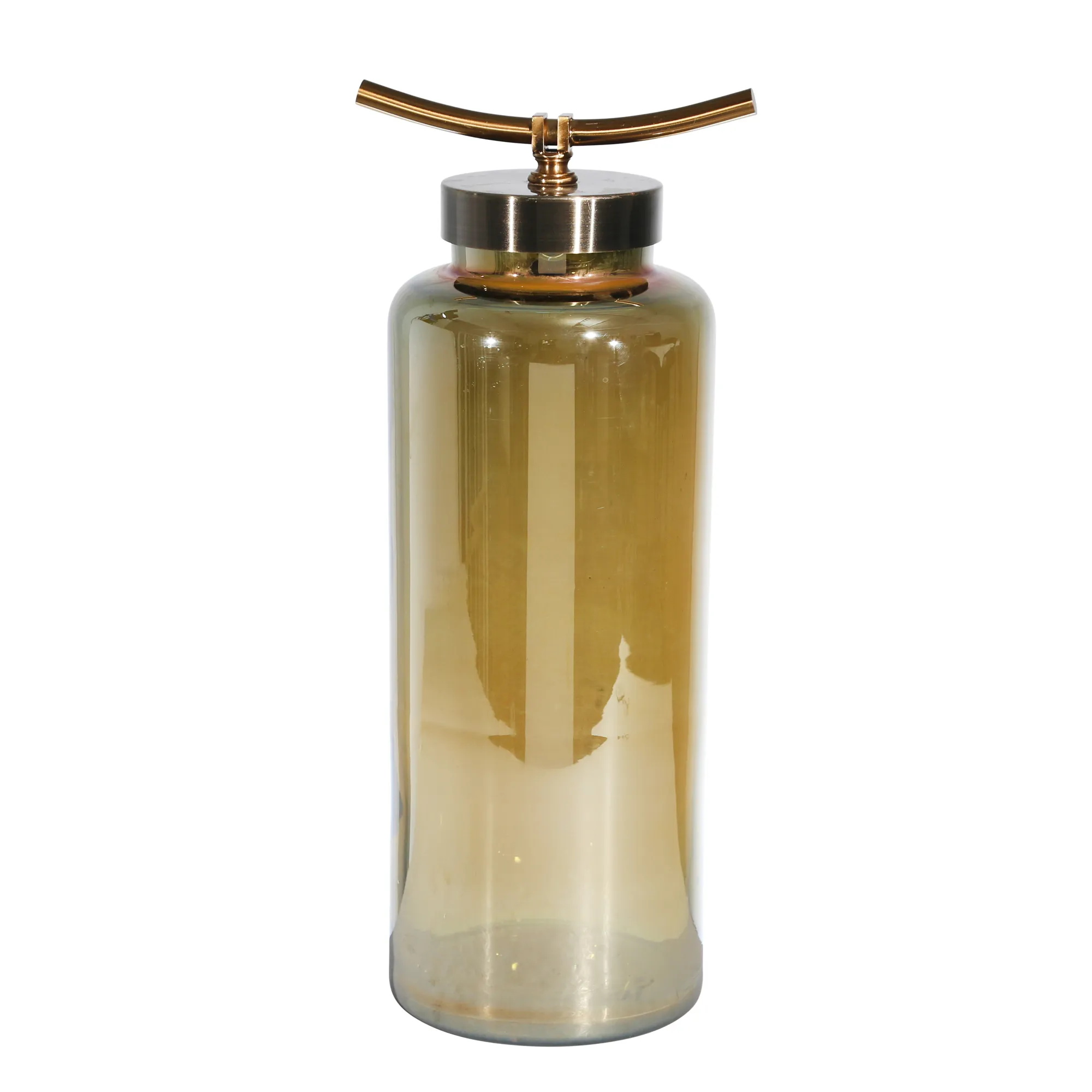 Glass 17" Vase W/ Metal Lid, Gold Chrome