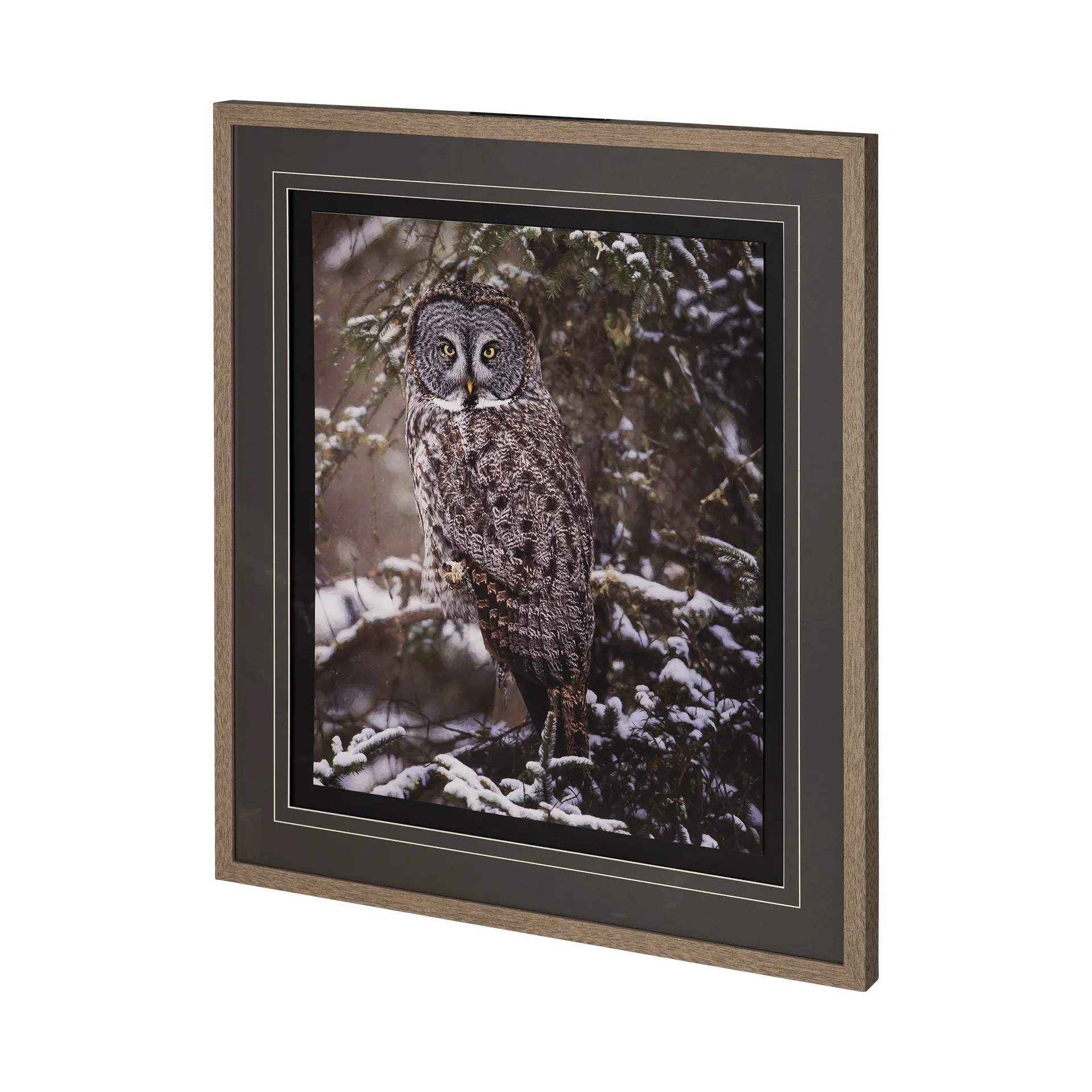 Inspired by the serene beauty and majesty of a great grey owl in its natural snowy habitat.Ā