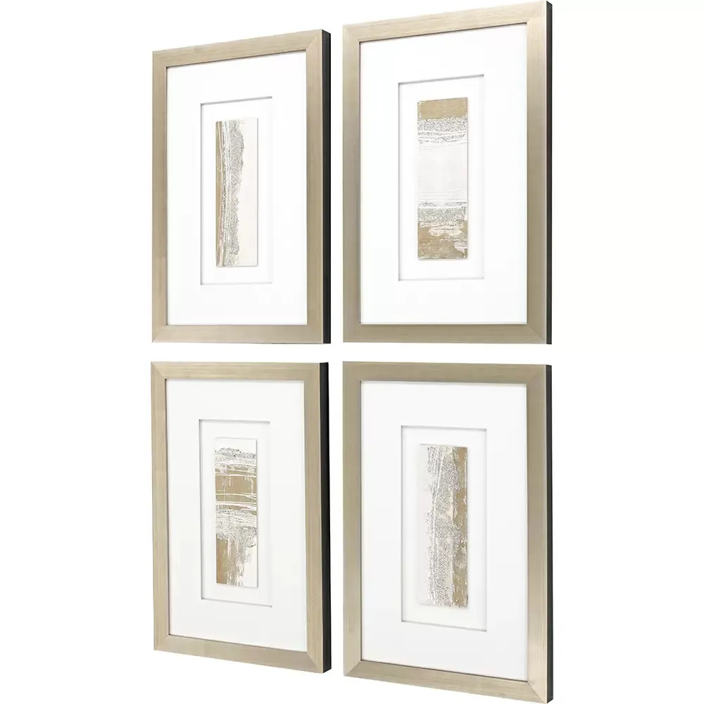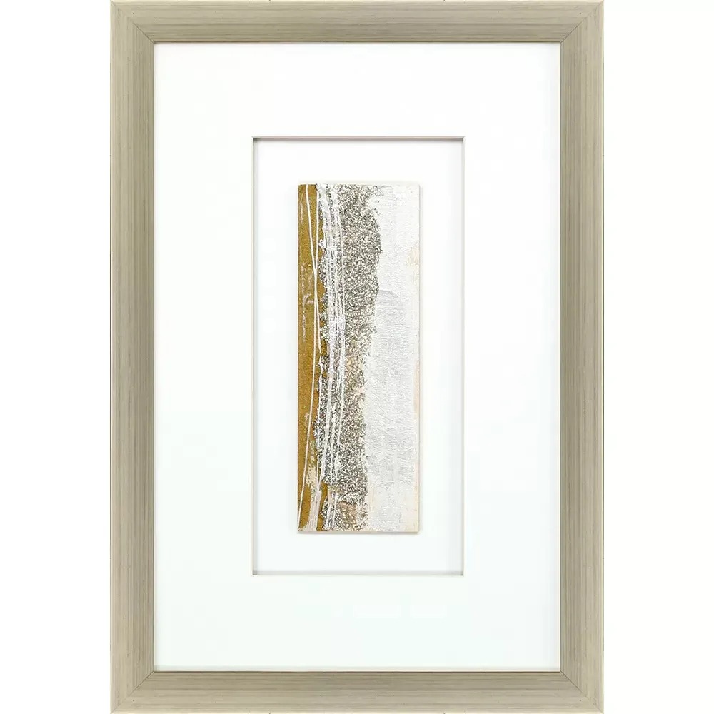 Exclusive mixed media hand painted on wood. Double-matted in white and framed in a modern antique silver wood molding with painted black edge.