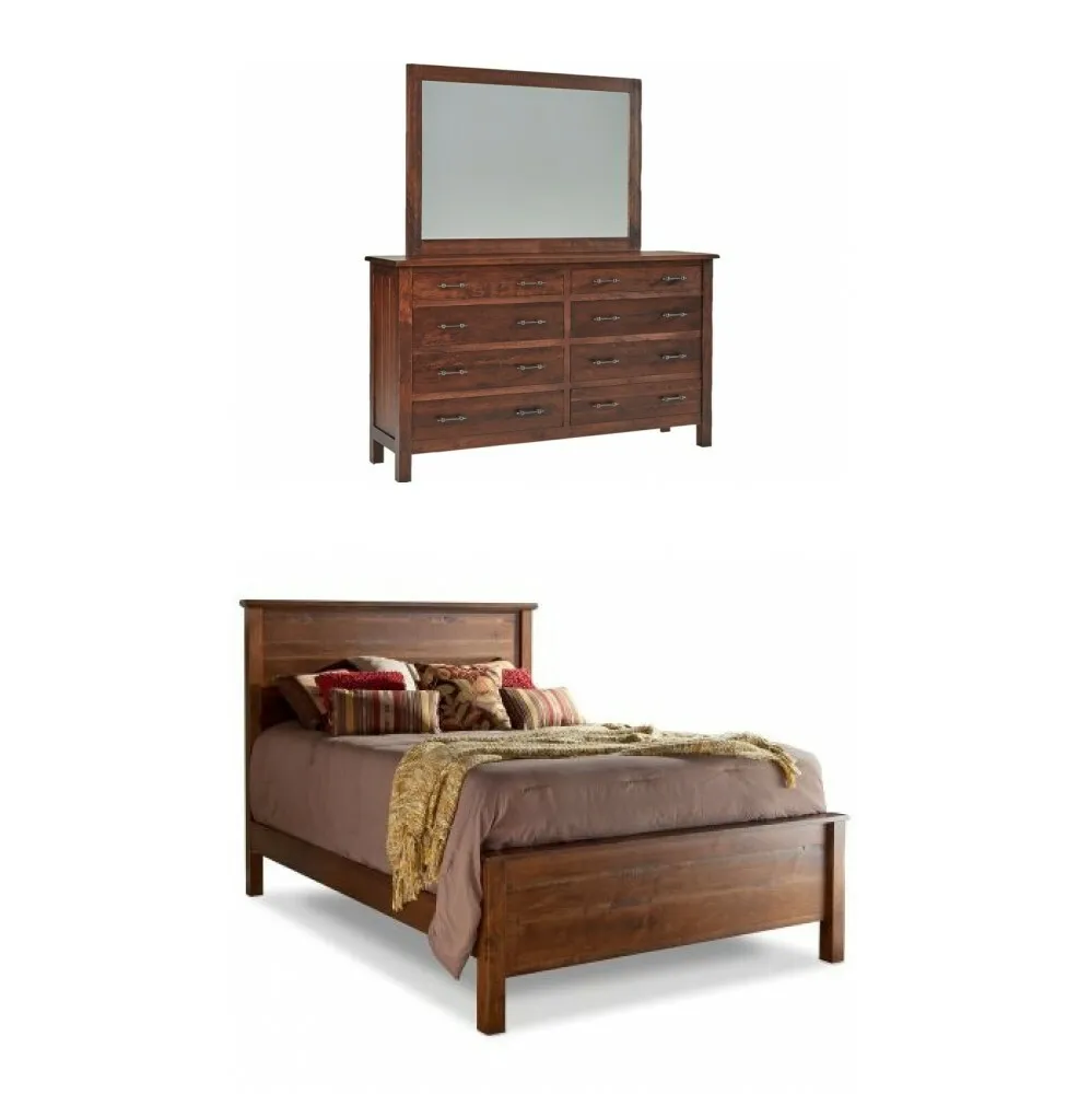 Includes Lewiston Queen Panel Bed and 8-drawer double dresser with tall wide mirror.