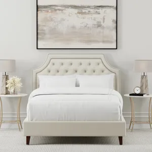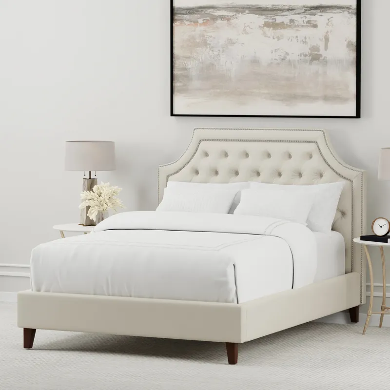 A true dream come true, this luxurious upholstered bed is a statement-maker in every way. Worthy of being the focal point of the bedroom, it creates a high-end look with classic design elements that will always be in style. Tailored in an exquisite fabric cover, it features a matching footboard and side rails distinguished by superior construction features and upscale design details. Its plush layers of padding and touchably soft fabric ensure you are comfortably supported as you lounge in bed or enjoy a favorite book or movie.