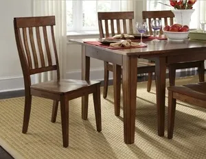 Toluca is our solid hard wood dining set that brings rustic elegance to your home. The lightly distressed finish on this slat back side chair is absolutely loveable. MATERIAL: Solid Hardwood