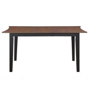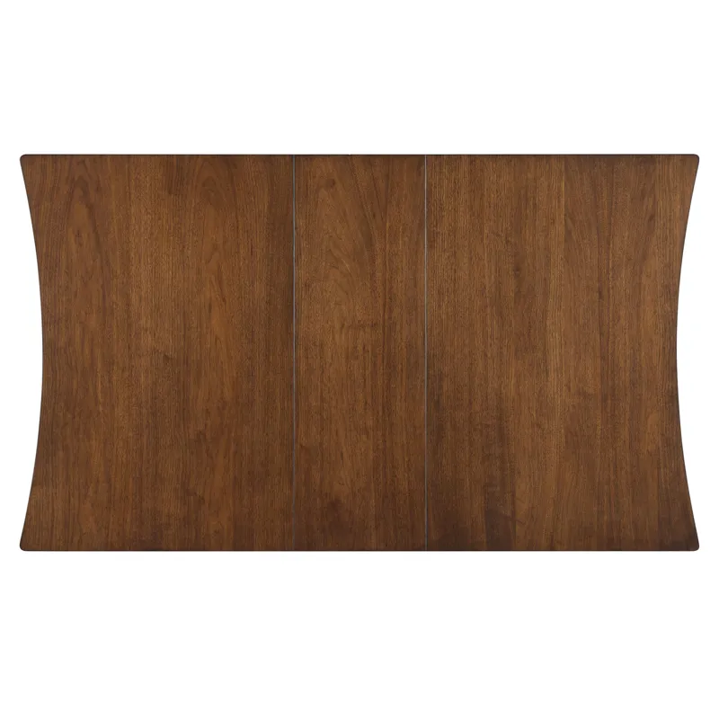The Joplin 50-62ā³ Dining Table blends modern functionality with elegant design. A striking walnut veneer top is complemented by ebony-finished solid wood legs for rich contrast, while concave edges at each end add a pop to the overall presentation. Perfect for apartments or cozy dining areas, this transitional piece fits beautifully into any space. Need more room? A 12ā³ leaf expands the table to 62ā³, comfortably seating six. Compact yet captivating, the Joplin table offers style and versatility in one smartly designed package.