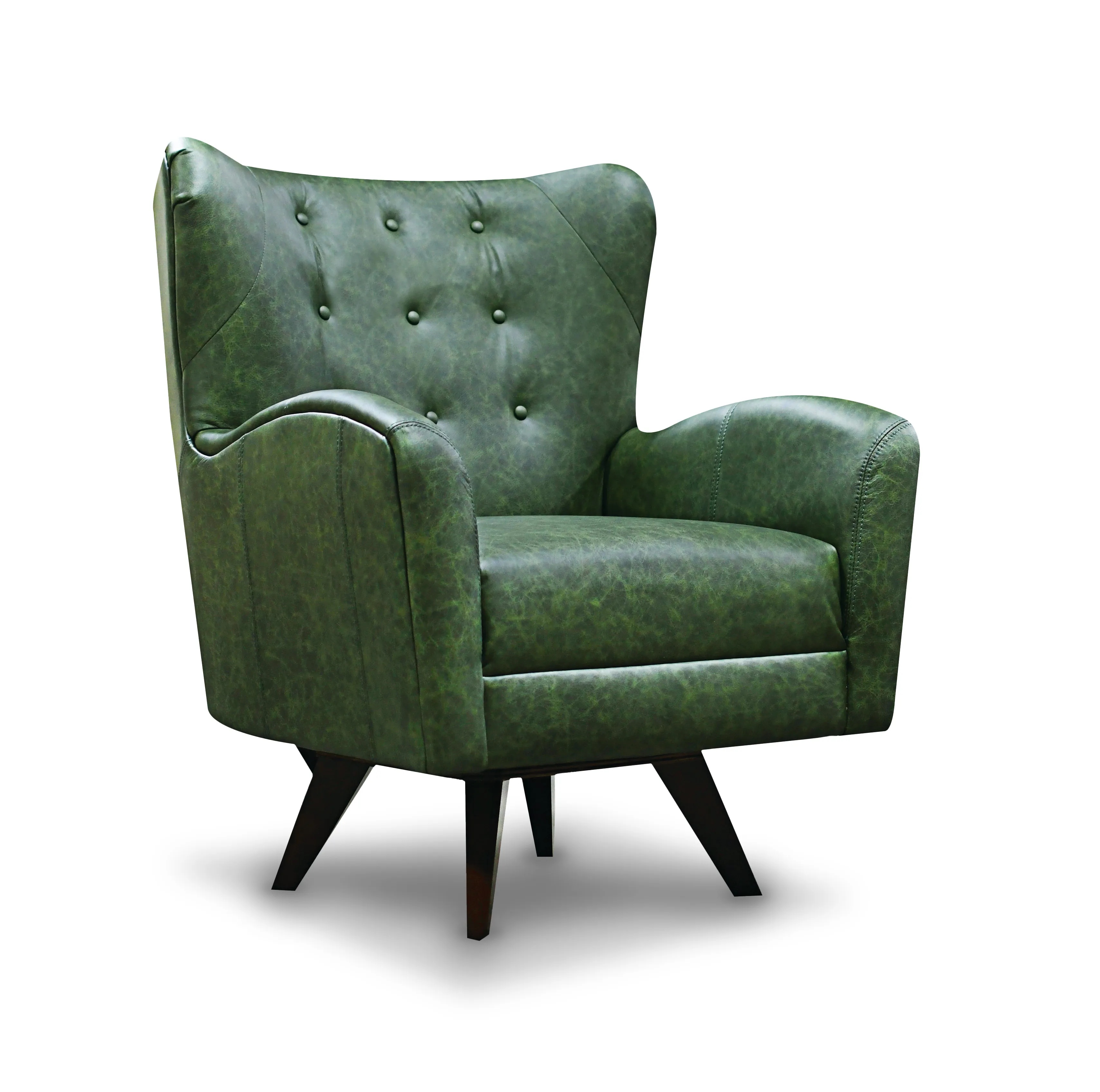 Harlow is equal parts sassy and classy. Its button back, wing back, and wooden swivel base combine for a chair with great mid mod vibes. Available in your choice of fabric or leather to complement your decor.