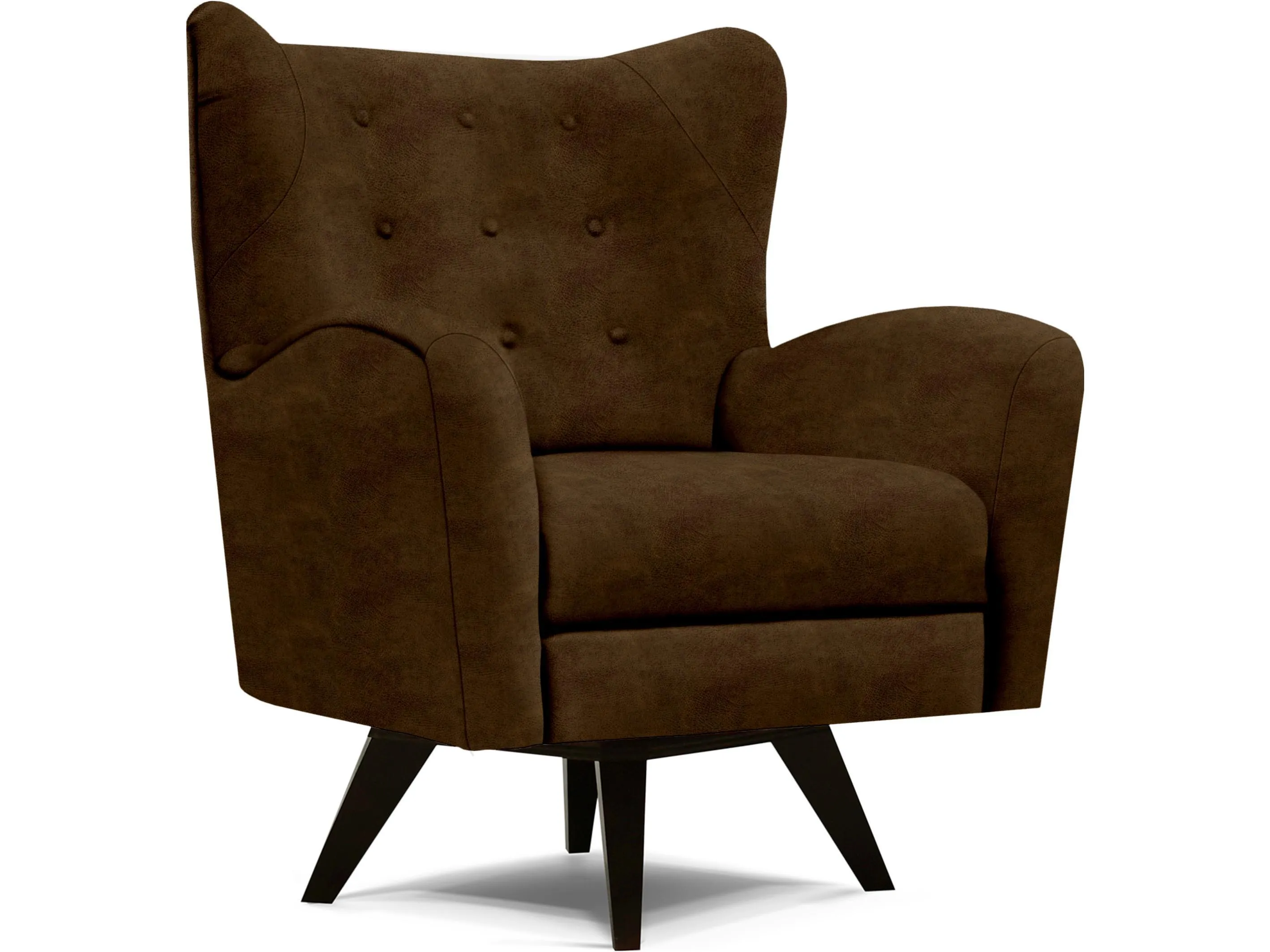 Harlow is equal parts sassy and classy. Its button back, wing back, and wooden swivel base combine for a chair with great mid mod vibes. Available in your choice of fabric or leather to complement your decor.