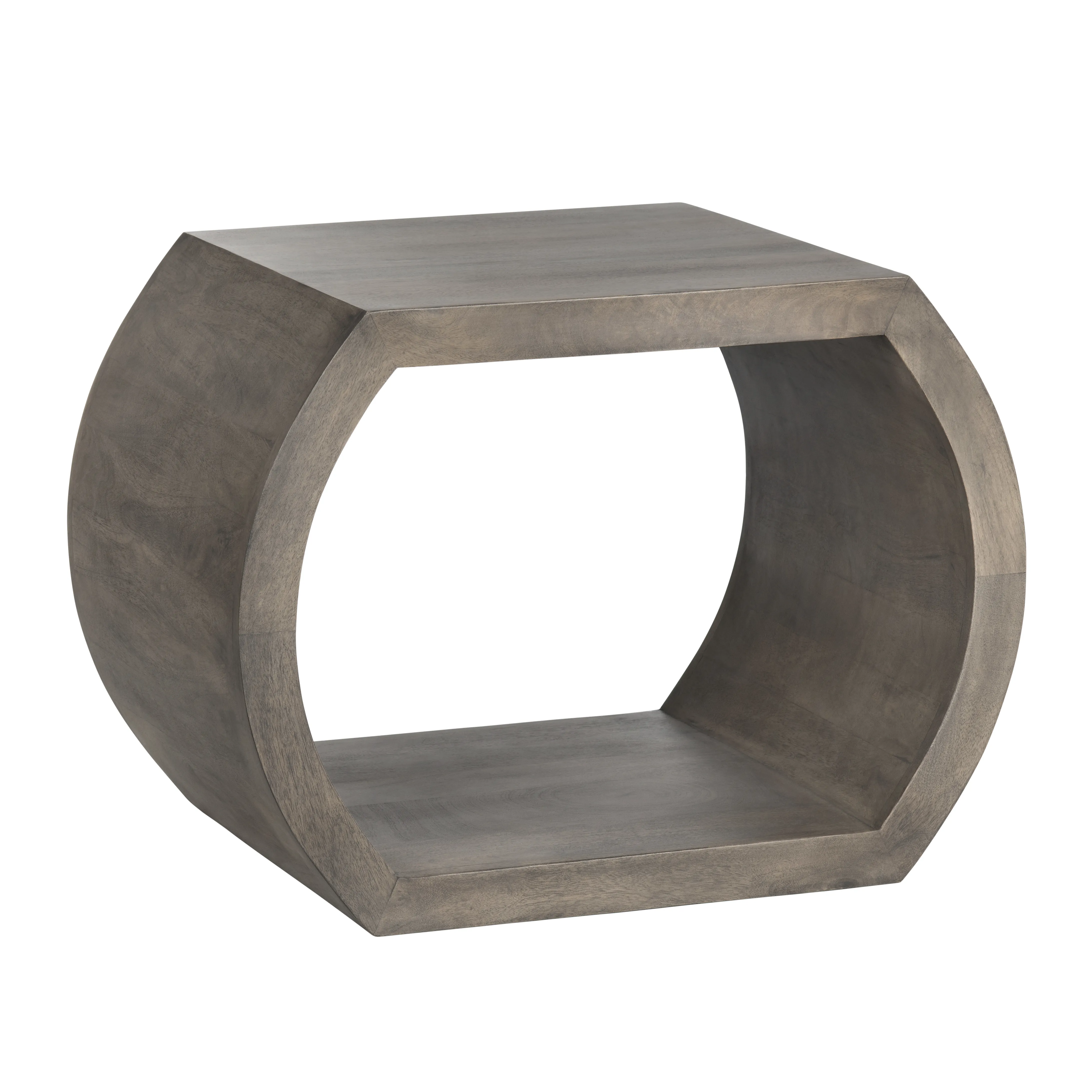 Architectural negative space done right. A broad hexagon ring handcrafted from mindi wood offers a sturdy 24āinchāwide surface while keeping rooms light with its open interiorāperfect for stacking coffeeātable books or a woven basket.