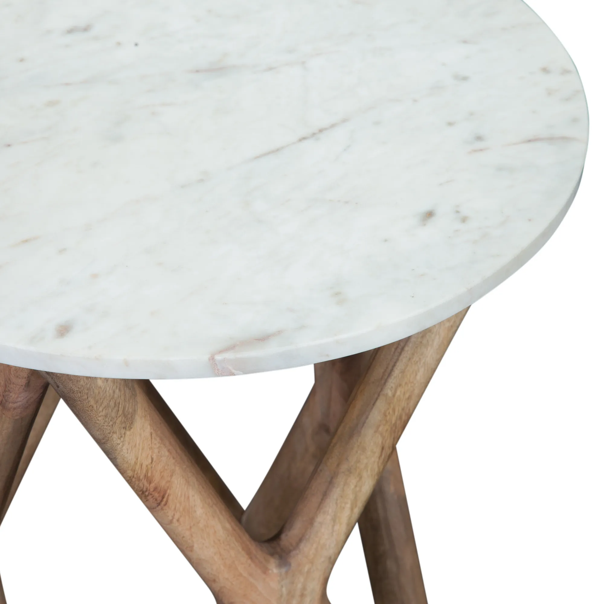 The Wyman Banswara 20ā³ Round White Marble Top End Table showcases expert craftsmanship and refined elegance in a compact design. Its 16mm solid Banswara white marble top features a polished surface for a sophisticated touch, while the hand-carved honeycomb base, crafted from solid mango wood with a natural stain, adds organic, rustic charm. Natural variations in marble and wood grain make each piece unique. Designed for durability and timeless appeal, this end table is a stunning accent, seamlessly blending sophistication with artisanal character.