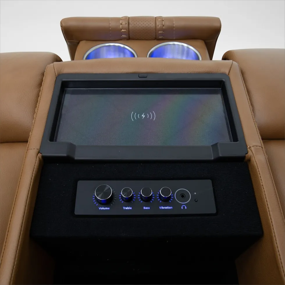 - Each arm has a hidden cupholder with LED lights.