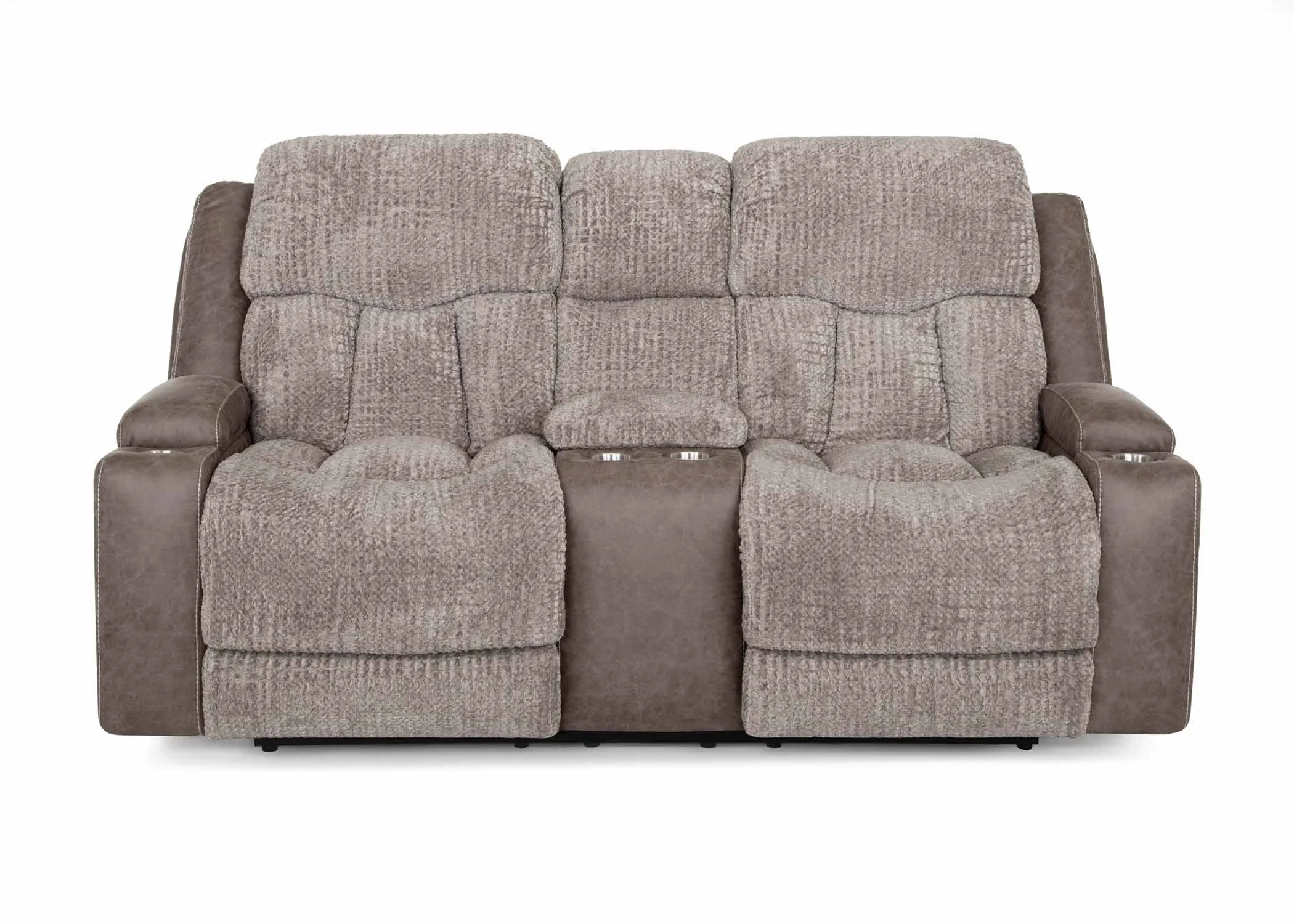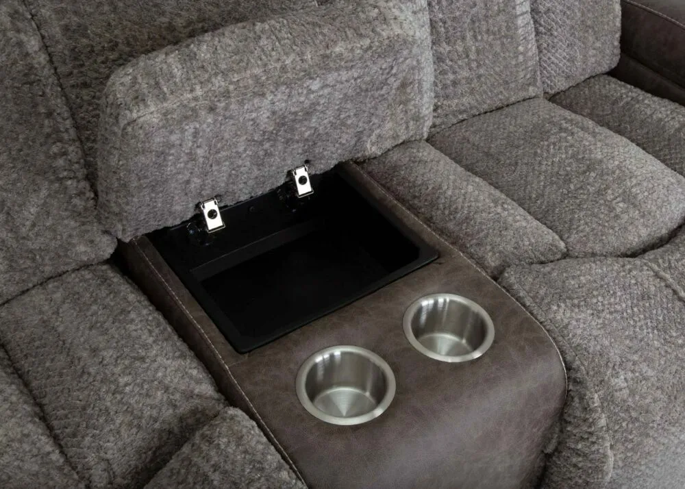 65235 Power Reclining Console Loveseat w/ Power Headrest, Console Storage, Dual Arm Storage, Massage, and Cupholders 80" Ć 43.5" Ć 45"