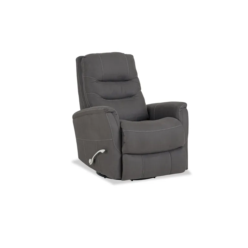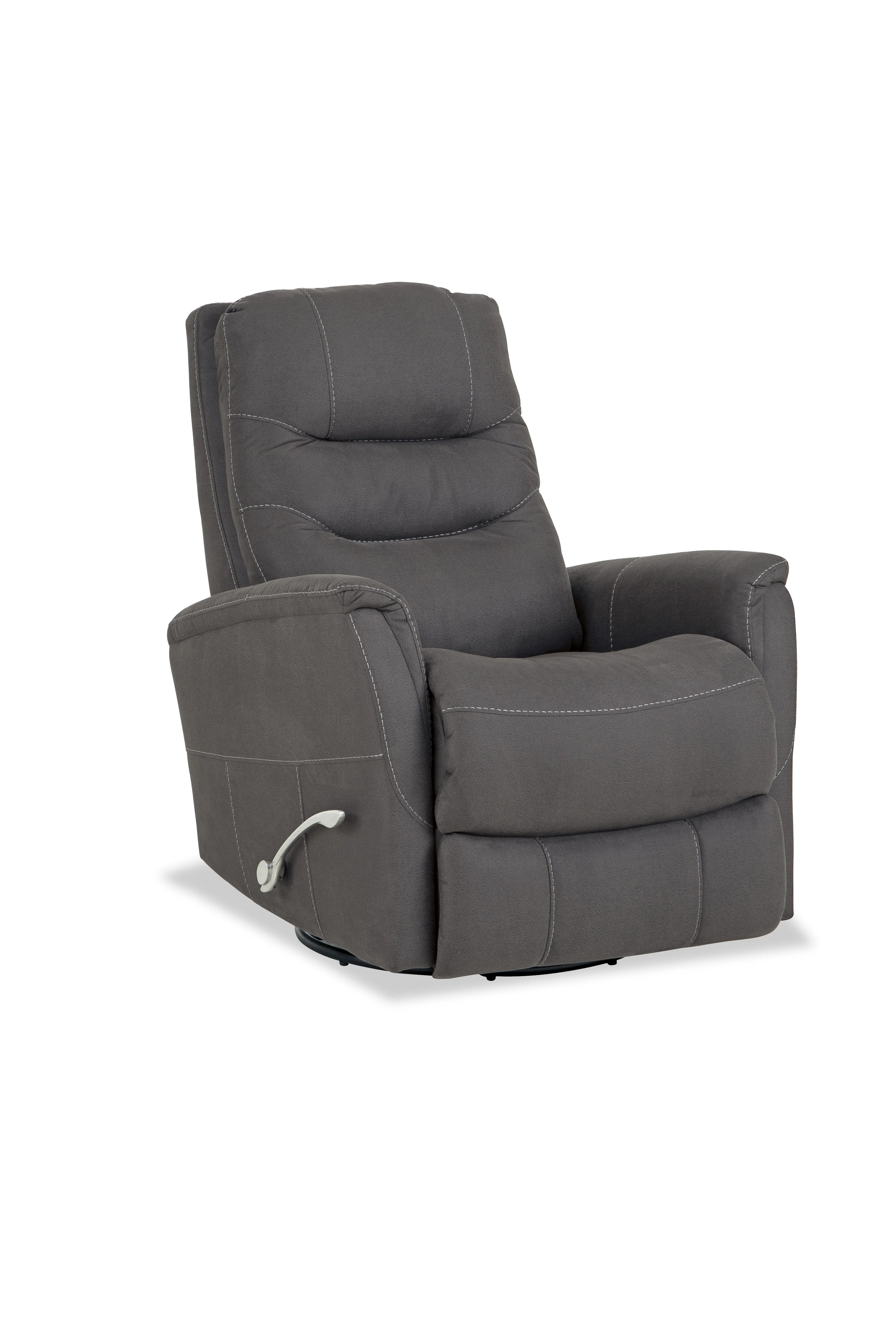 The 243 Genesis is a medium-scale glider recliner with a full 360-degree swivel base.Ā Ā The chair features a sleek modern look, a solid foam track arm, and a pad-over chaise for extra leg support. The polished aluminum handle is both stylish and functional, and adds a modern, chic finish to this streamlined rocker recliner.