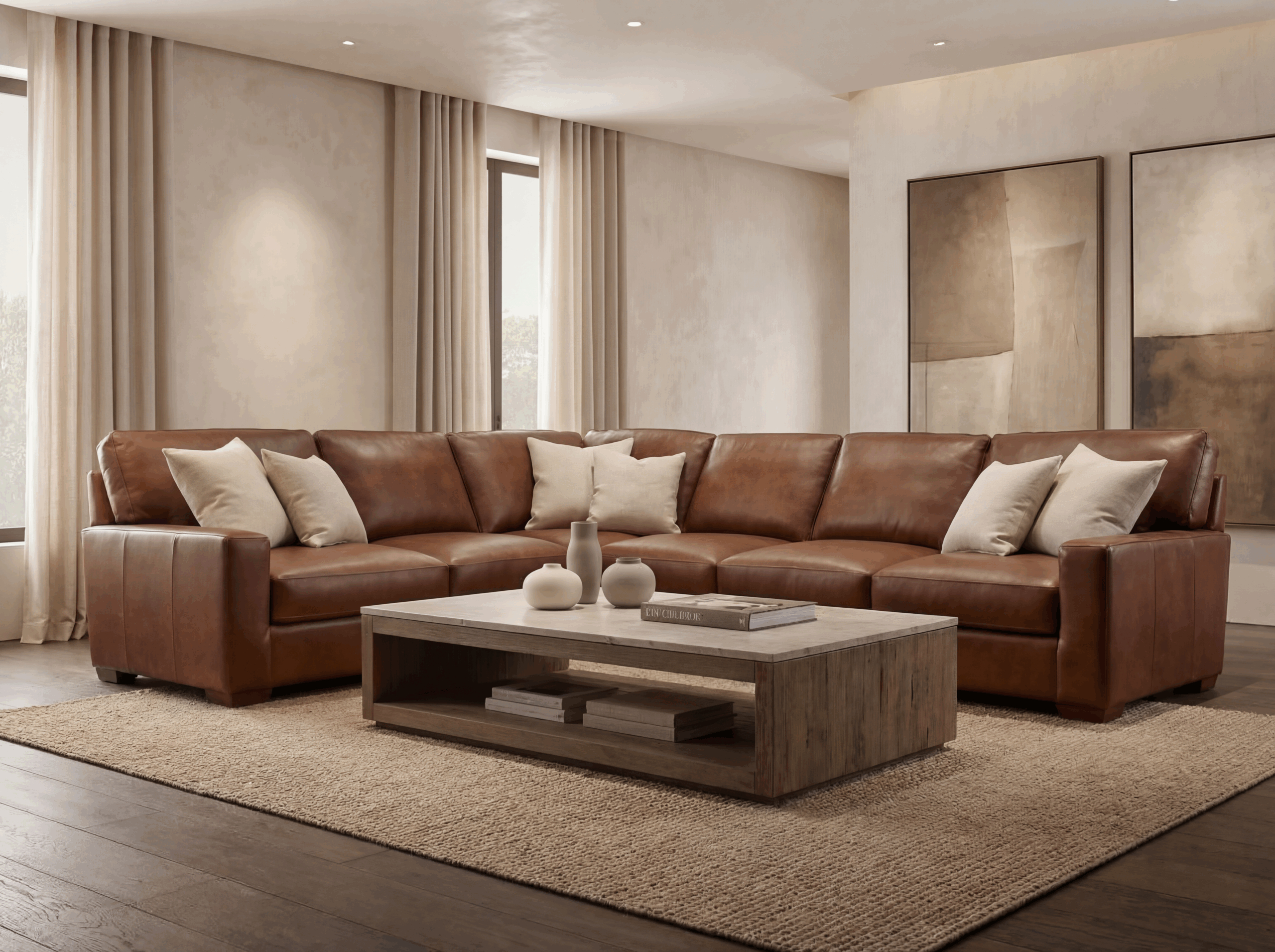 The 9940 is a generous track arm, and ultimate comfort in one of our finest leathers. The sectional pieces are modular offering a variety of configurations.