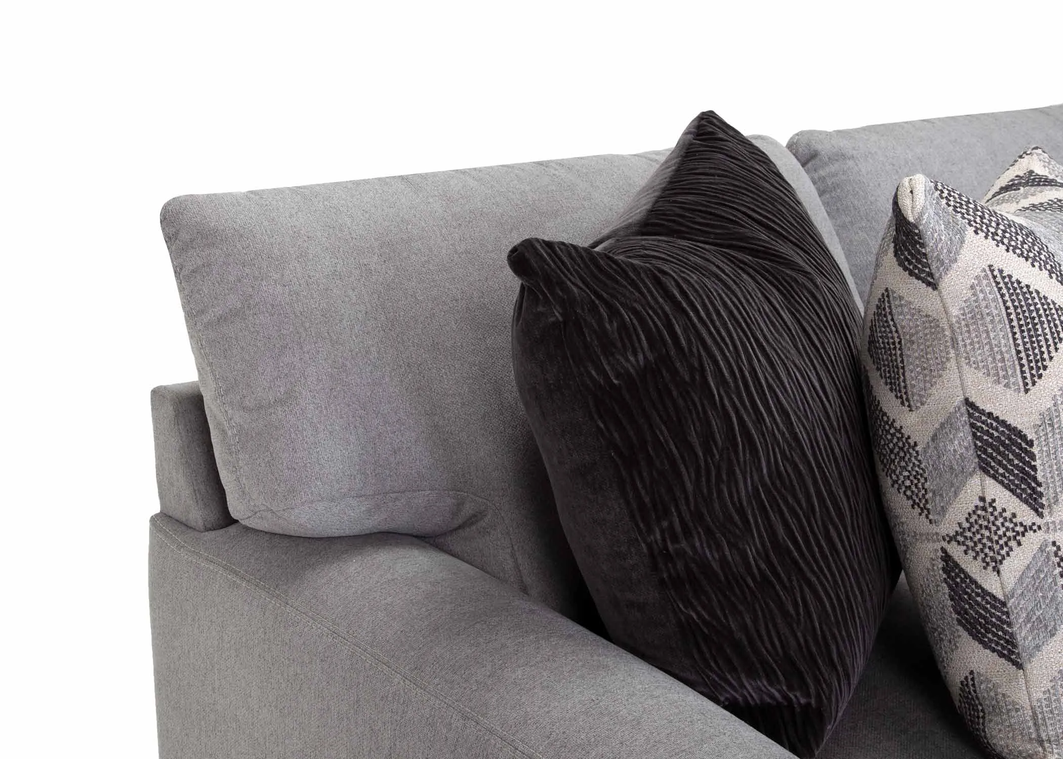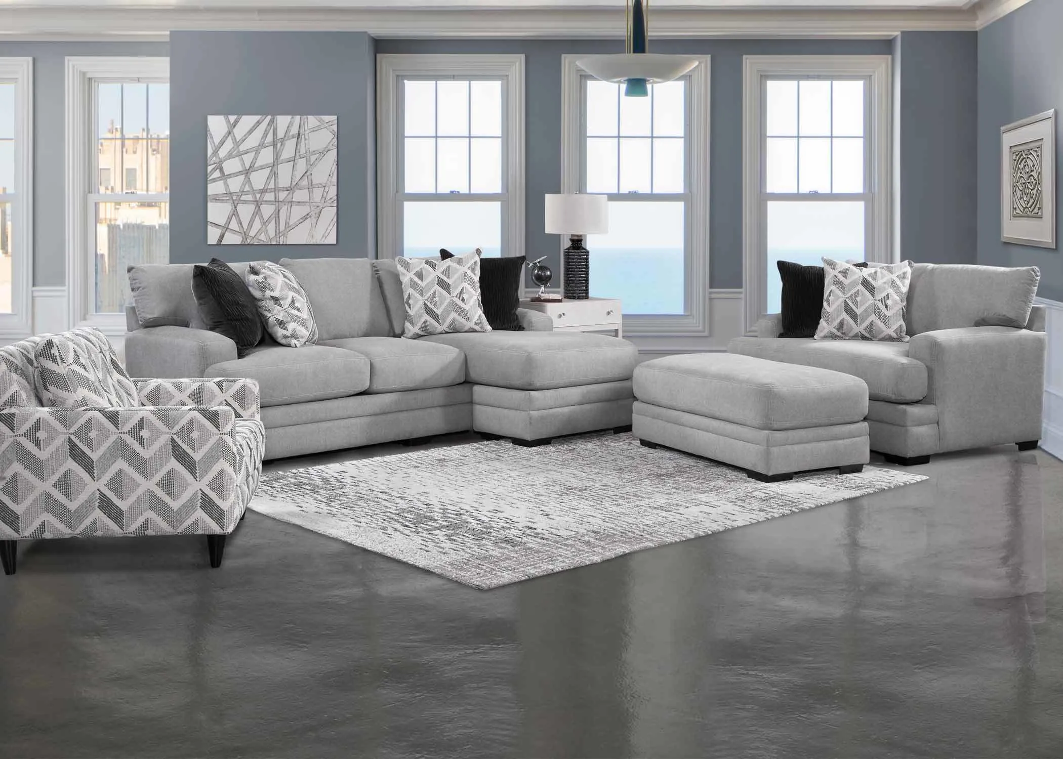 The Cleo Collection combines transitional style with exceptional comfort, making it a perfect fit for modern living spaces. This versatile group includes a sofa with a reversible chaise, a chair and a half, and a matching ottoman, offering a range of seating options to suit your needs. Upholstered in a soft light gray fabric, the Cleo provides a neutral yet stylish foundation that complements any dƩcor. Coordinating throw pillows with pops of light and dark gray add depth and visual interest, giving the set a polished, designer-inspired look.