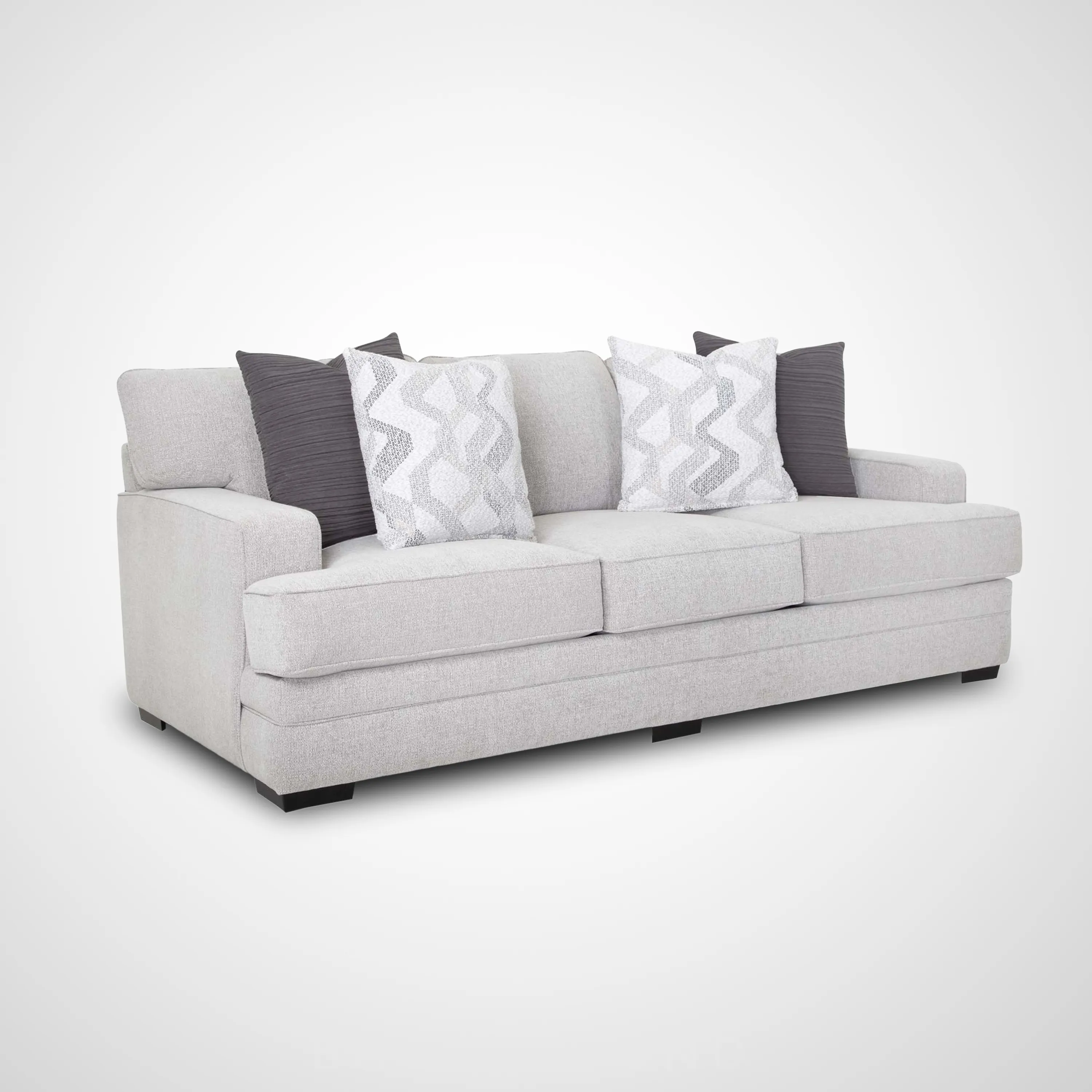 The 953 Stella Collection brings together timeless style and unmatched comfort, making it the ideal centerpiece for any living space. Designed on a large scale, this collection includes a sofa, loveseat, chair and a half, and matching ottoman, providing ample seating for family and guests. Each piece is crafted with both elegance and durability in mind, upholstered in a beautiful neutral fabric and accented with coordinating throw pillows for added texture and visual interest.
