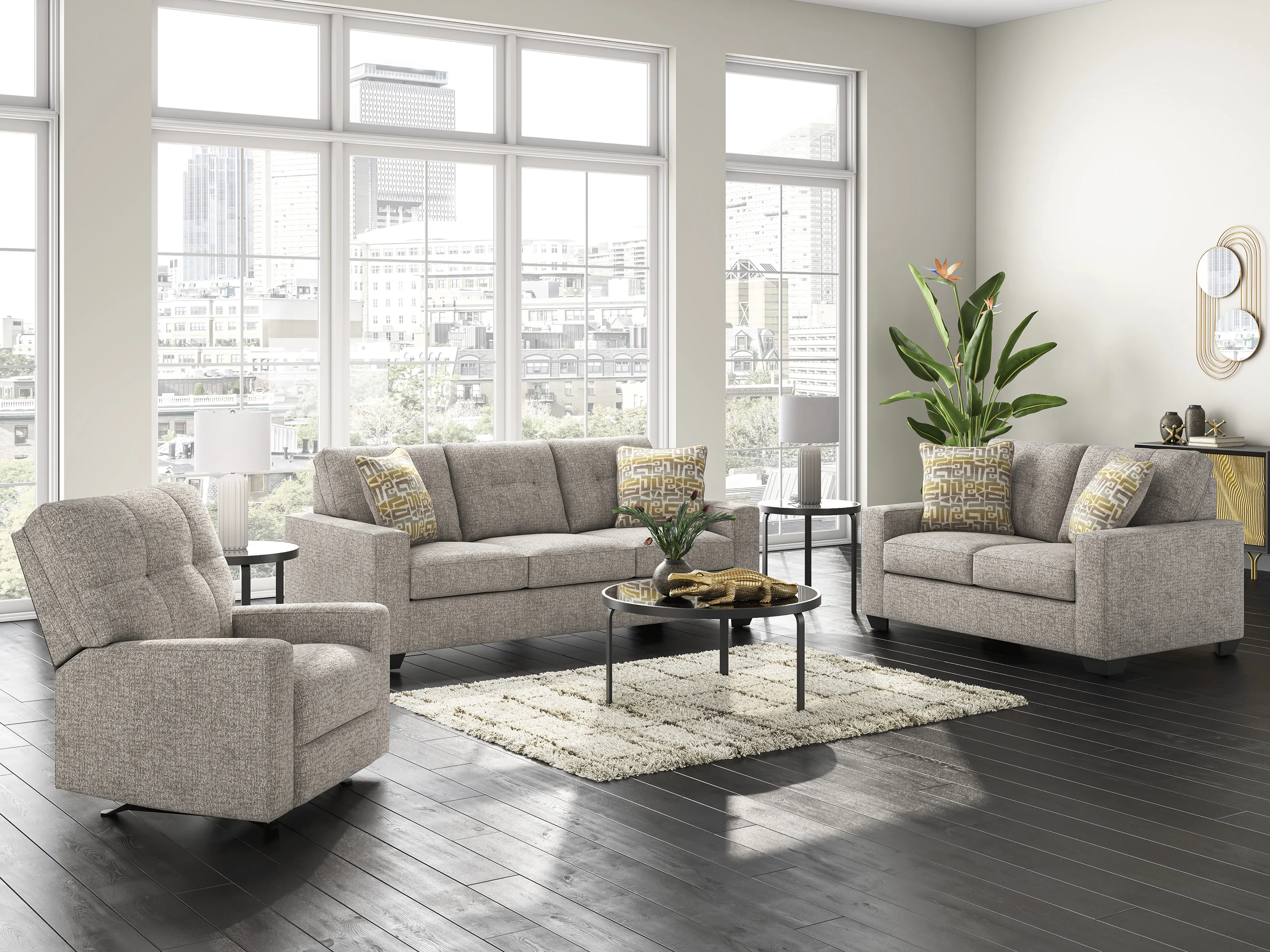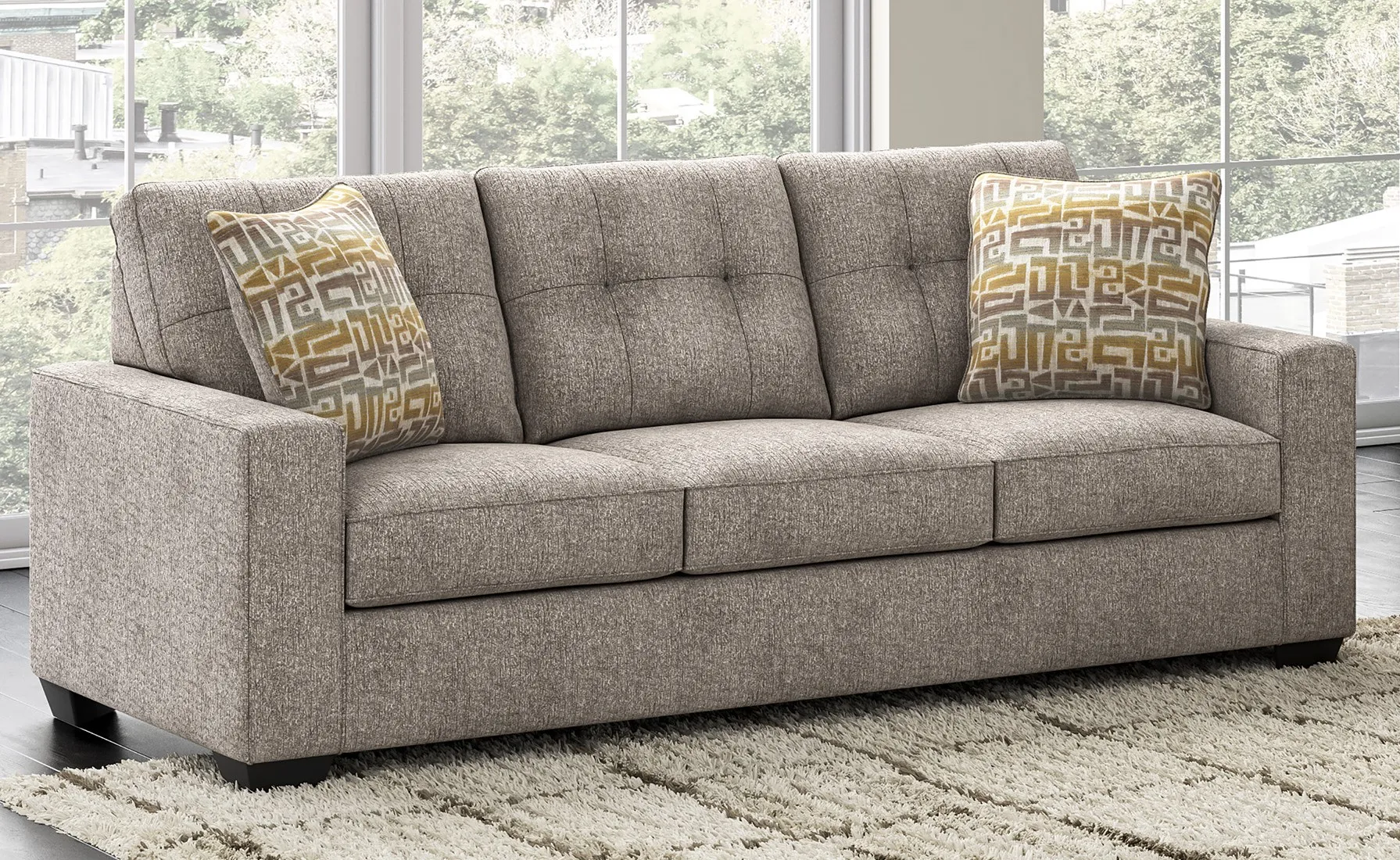 Sincere in its styling, this sofa marries classic function with modern design elements for truly transitional appeal. Its track arms lend a contemporary vibe while soft, durable upholstery ups the comfort level. And with the sofa's goes-with-anything neutral color, styling is made simple. All thatās left for you to do is to sit back and relax.